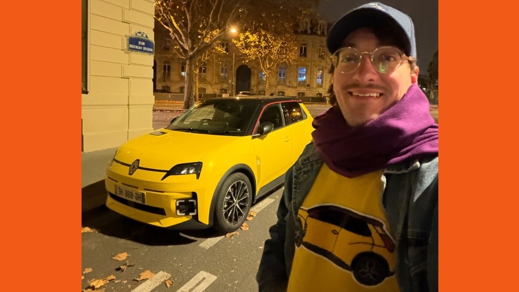 The author celebrates the new Renault 5 during an unexpected Paris stay, praising its design, retro appeal, and the broader excellence of French cars.