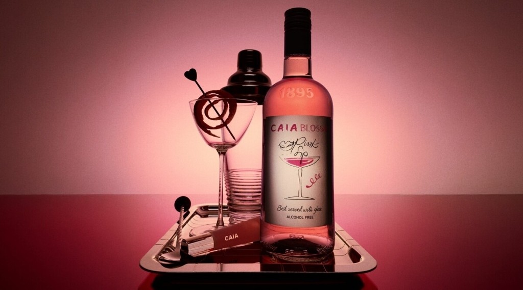 Caia och Blossa samarbetar om Pink Sip, en alkoholfri rosa glögg med hallon och tranbär, ihop med matchande läppglans för en festlig jul.